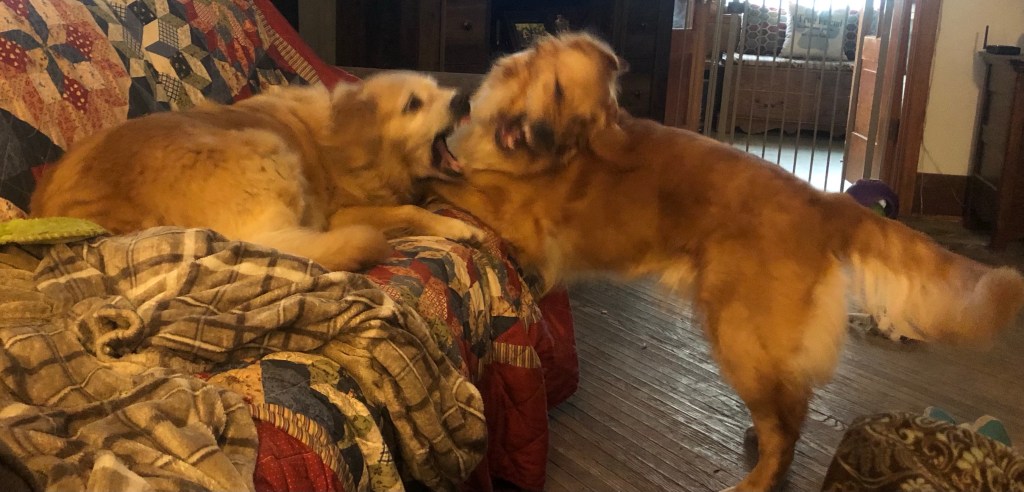 Roughhousing whether it’s playing “grab the toy” or jaw sparring is sooo much fun! You should try it some time! ~ Belle Pup