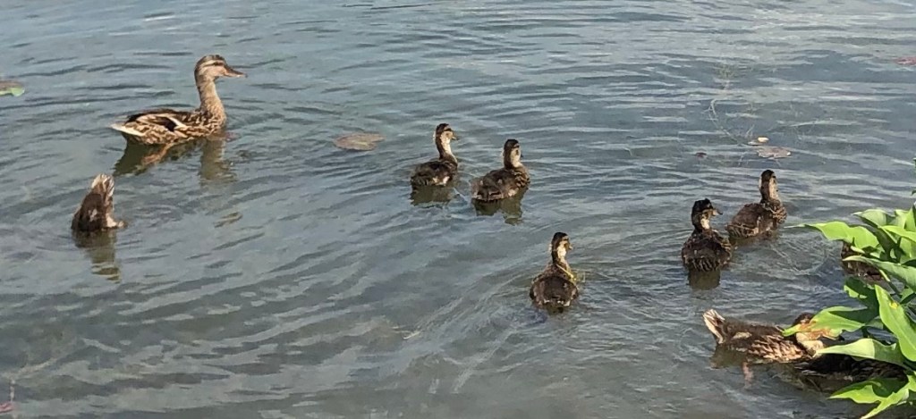 “Sammy! We are finished with our diving lesson and moving on to our swimming against the current lesson. Come on, let’s go!” ~ Mama Duck (and her babies)