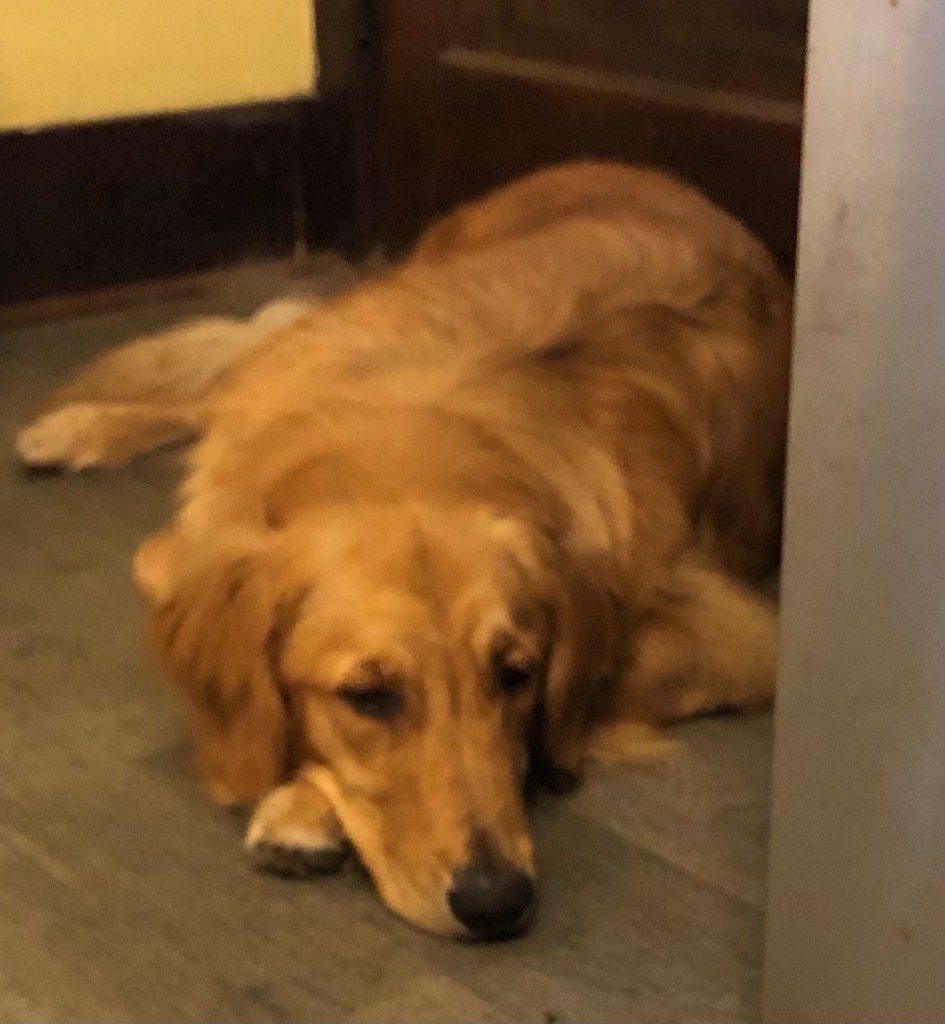 I don’t understand why you won’t let me go back out to the pup pen and keep digging the hole under the fence that I started when we went out to investigate what was stinking up our pen during the night. I’m telling you it’s just going to come back and stink up our pen some more if we don’t find it and chase it away. But oh no don’t listen to the young one. ~ Bea Pup