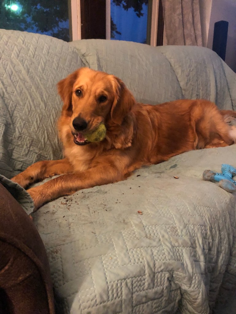 …then after I finished chewing on the stick I started playing with my tennis ball. After that I plan on playing with the blue chew toy. It’s nice to have choices! ~ Bea Pup
