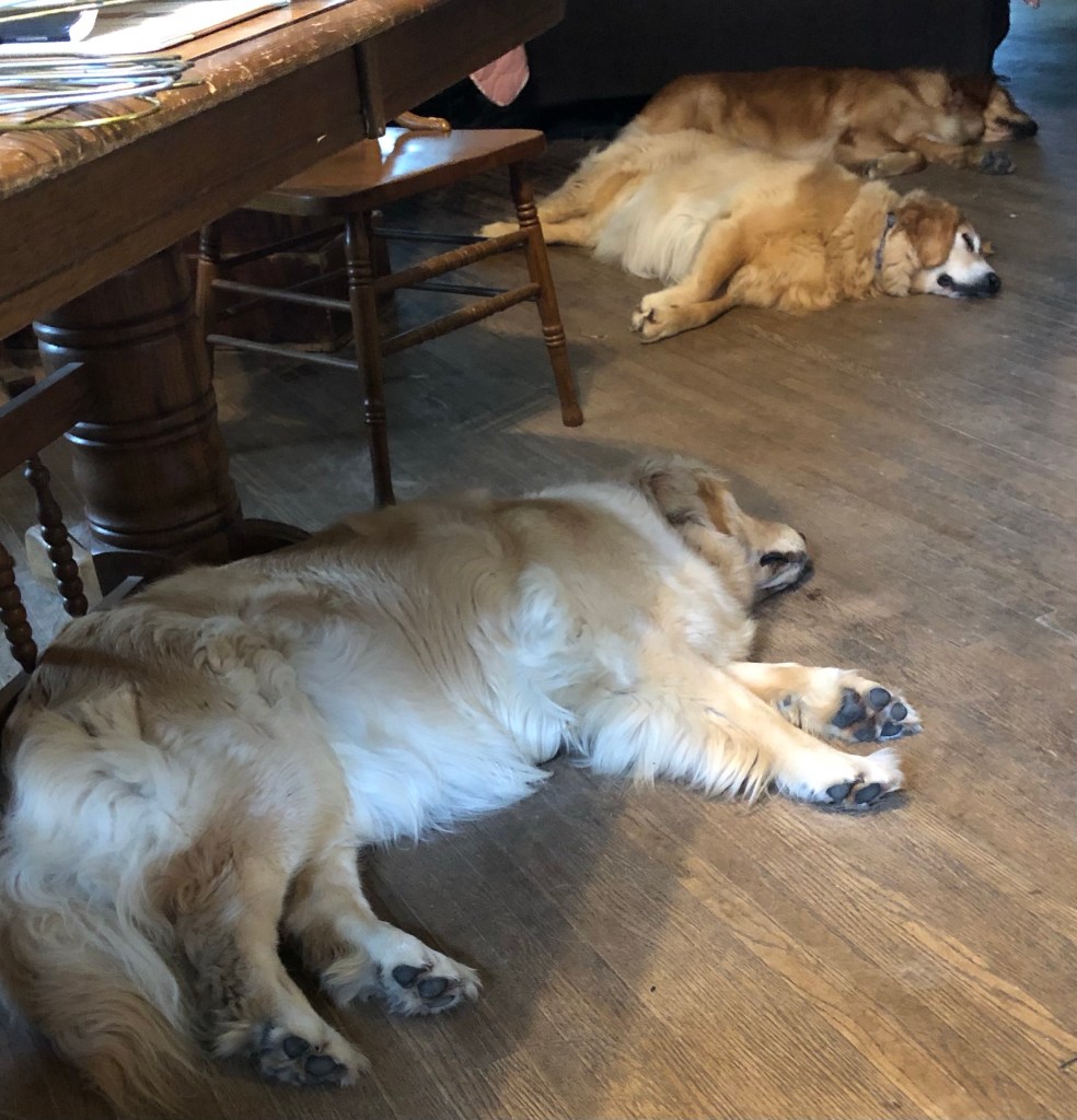 Helping our My Margret and My Greg is hard work. Zzzzzz ~ Bessie, Belle and Bea Pup