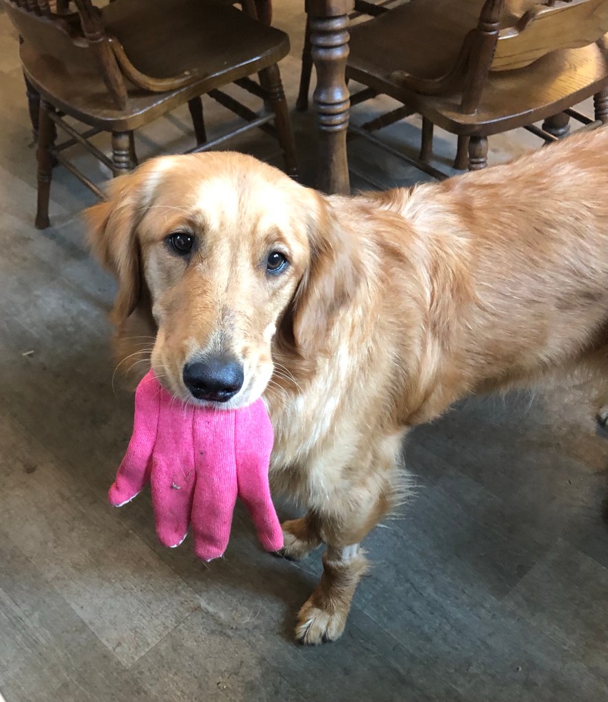 Sure I’ll trade you the glove for a treat but it has to be a good one! ~ Bea Pup
