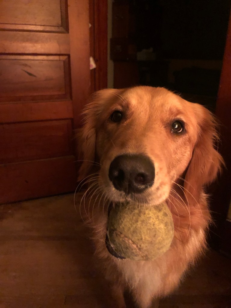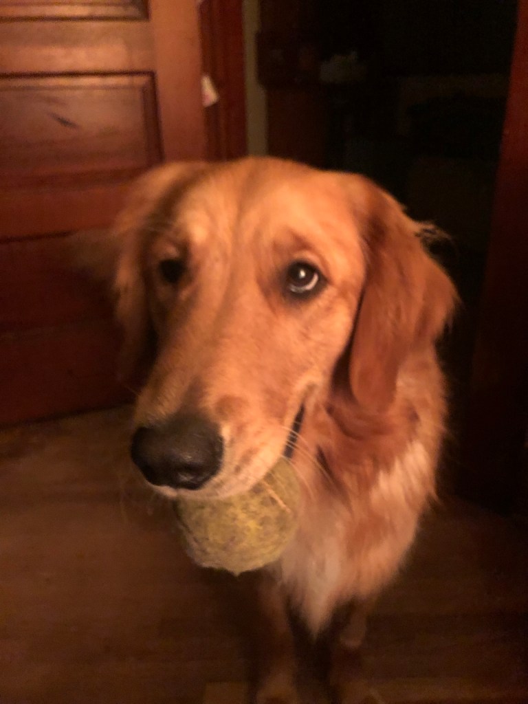 I know it’s bedtime but come on just one more tennis ball toss. Please!!!! ~ Bea Pup