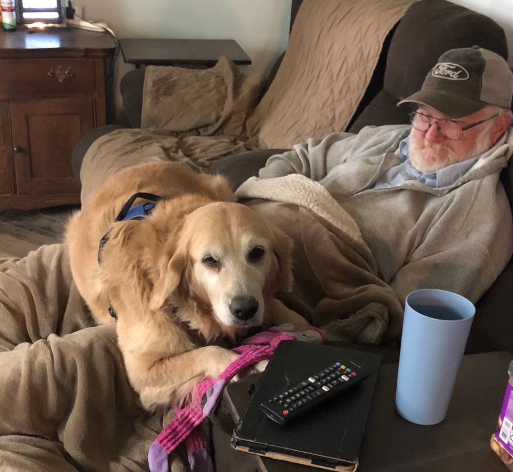 (Note: It was time to go to Belle’s vet appointment and she scurried as fast as she could onto Greg’s lap and let me know in no uncertain terms that she wasn’t going.)