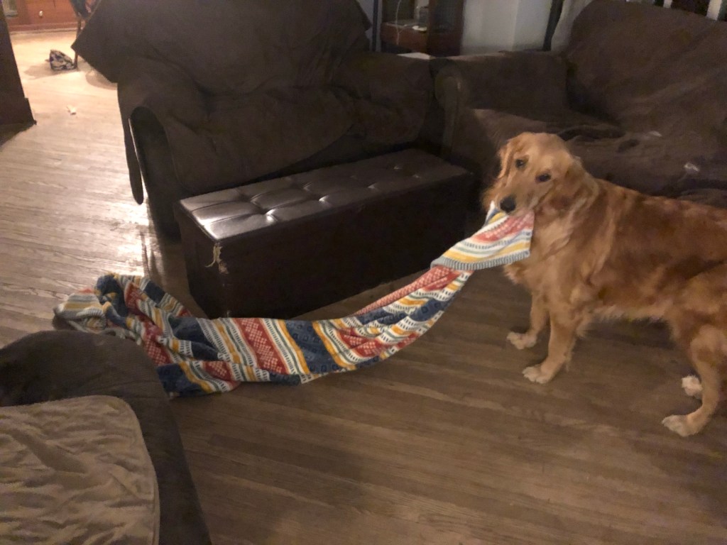 When you want to steal the blanket but you keep tripping over it when you try and run with it. ~Bea Pup