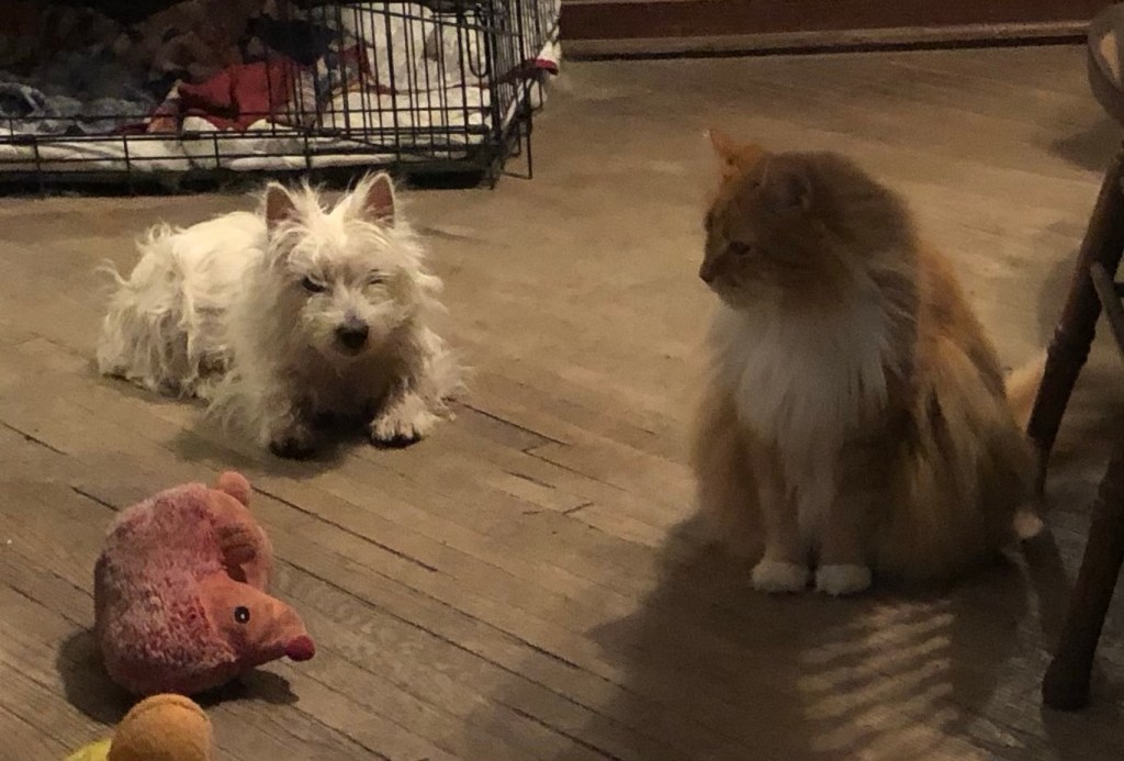 Playing tag with a cat is probably a bad idea, Scruffy. Glad Linus declined.