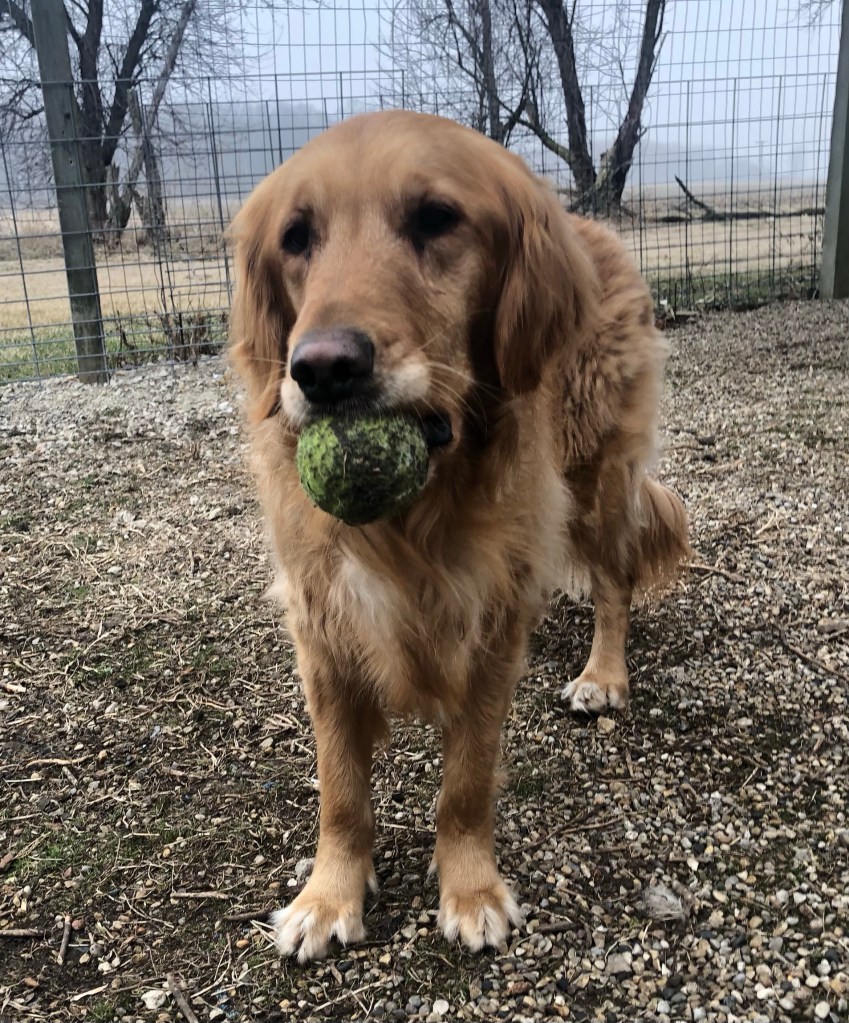 Do I or don’t I? If I drop the ball Scruffy might steal it before My Margret picks it up. But I really want to play “chase the ball” not “hold the ball.” Sigh… ~ Bea Pup