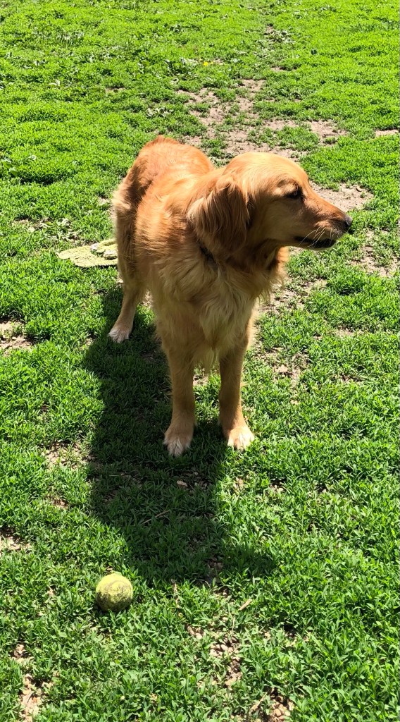Quick throw the ball before Scruffy sees it! ~ Bea Pup