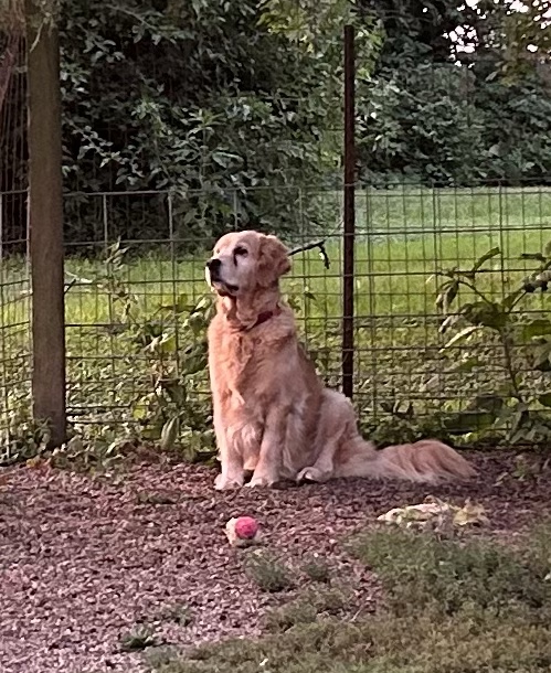 The chief watcher over of the backyard reporting in: all is good. ~ Bessie Pup