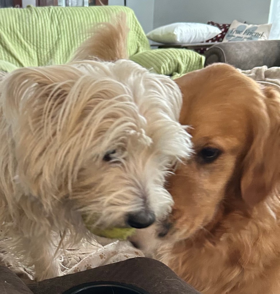 Scruffy, tell you what if you give me the tennis ball I’ll give you my next treat. ~ Bea Pup
