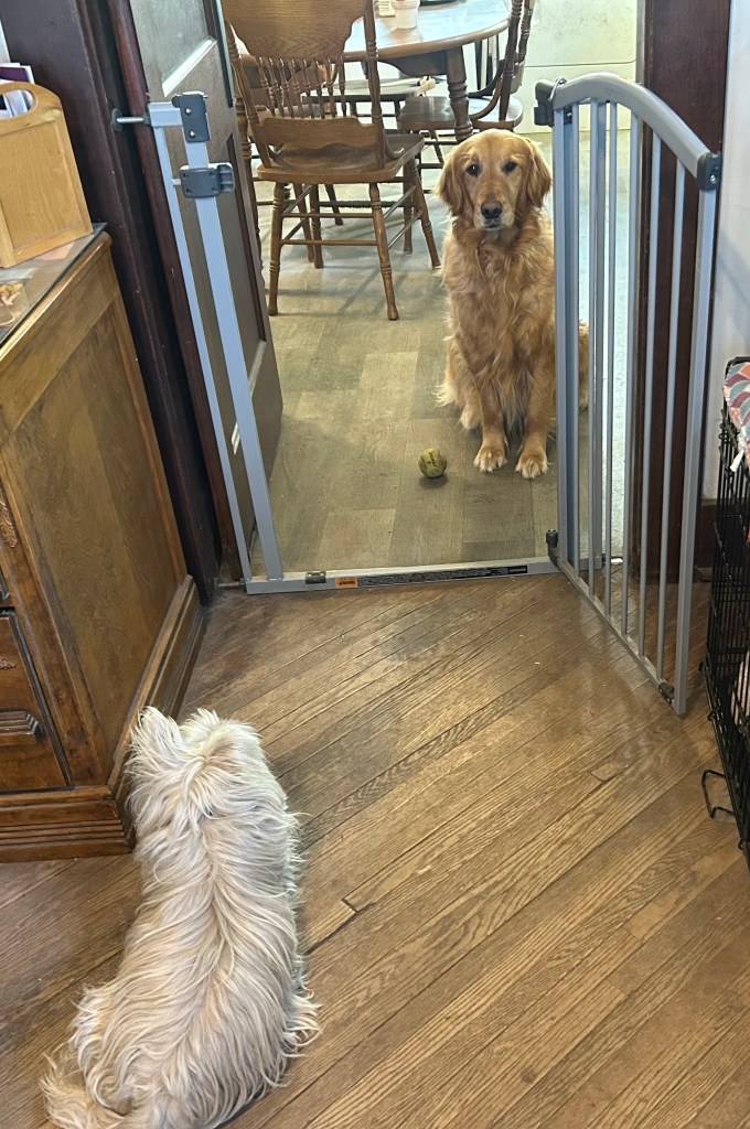I’m waiting for My Margret to turn around and play ball with me. ~ Bea Pup