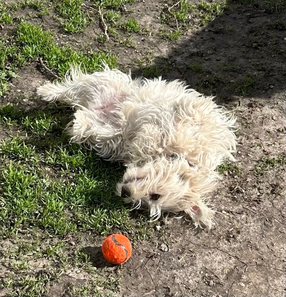 Rolling in dirt is a great hobby for a white doggie. I am also white, and I enjoy walking in mud. #goodtohavegoals