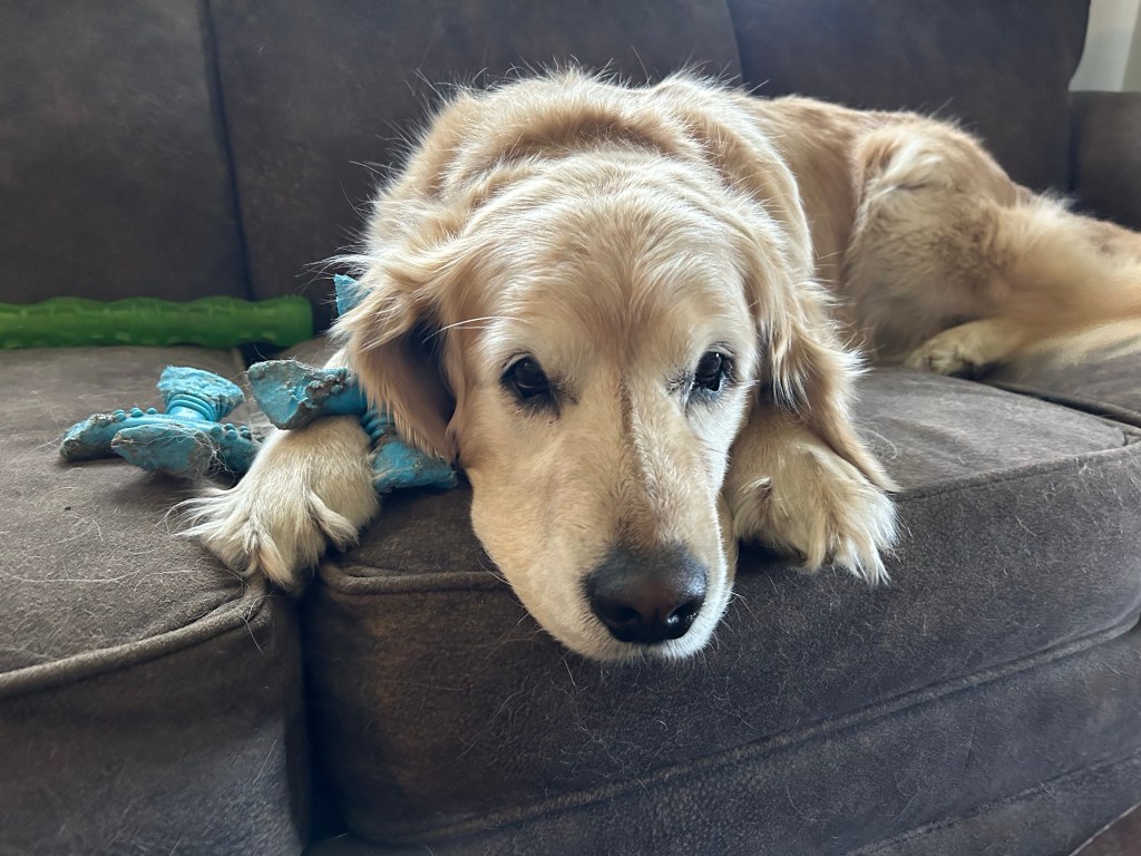 Why yes I do have a favorite blue x toy, how could you tell? ~ Bessie Pup