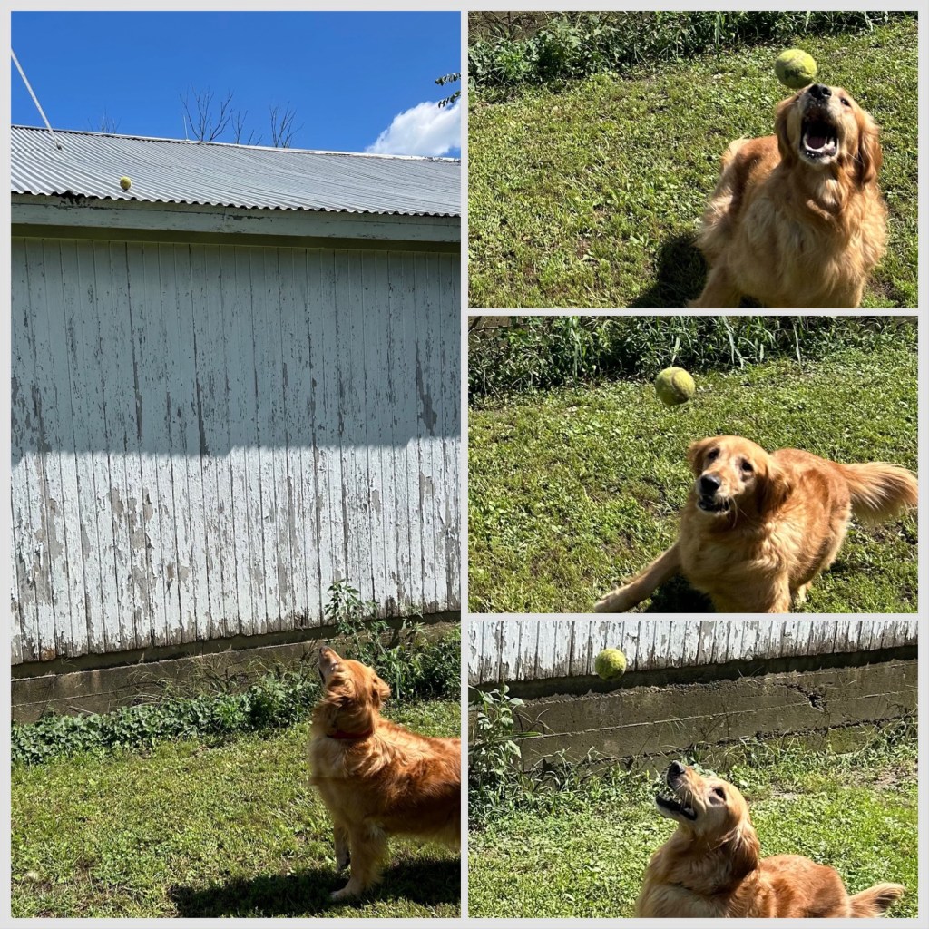 That is very doggie behavior. I like to let the ball hit me in the face. Then I walk over to it and don’t pick it up. What’s fetch…?