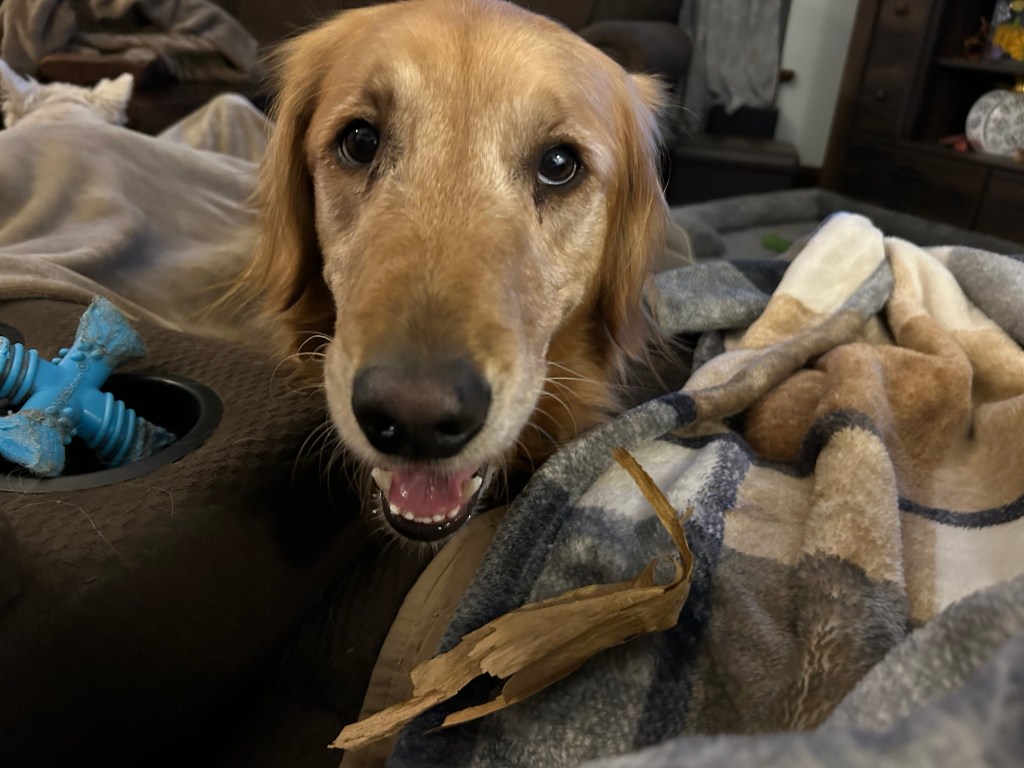 Hey look I found a flat stick!! (corn husk) ~ Bea Pup