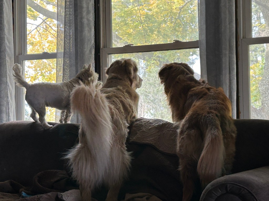The neighborhood watch pups are always on the job! ~ Scruffy, Bessie and Bea Pups