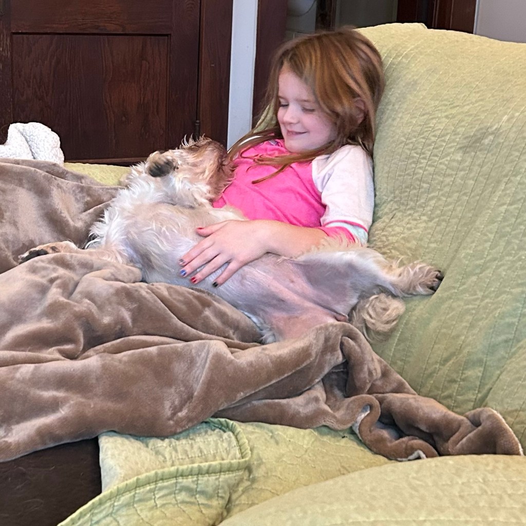 Mission Accomplished! I just love teaching my people how to give the perfect tummy rub! ~ Scruffy Pup