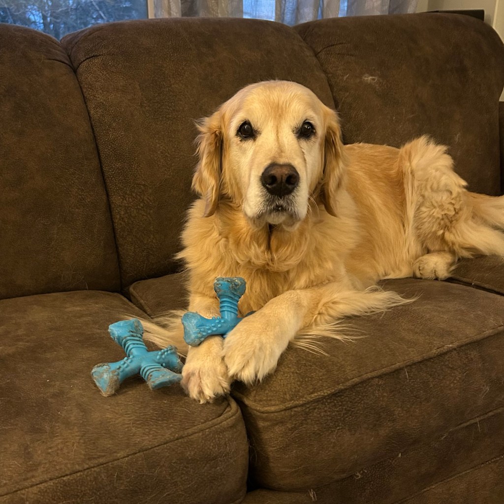 Now if I could only figure out how to chew on two toys at the same time. ~ Bessie Pup