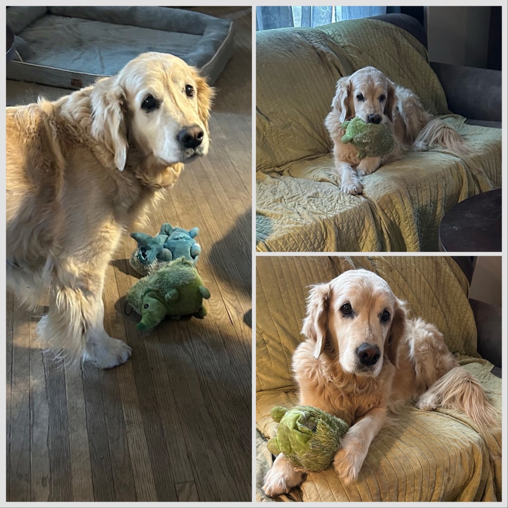 My littlest sister loves to steal my Herberts and “gasp” destroy them. Today My Margret brought The Herberts out of their safe place, gave my sisters something to do in the kitchen while I picked Herbert the Green to play with in the living room. We had a very good time. ~ Bessie Pup