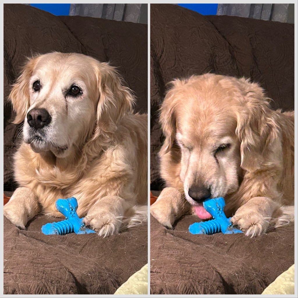 It’s great to have sisters to do the work when you just want to stay in and play with the chew toy.