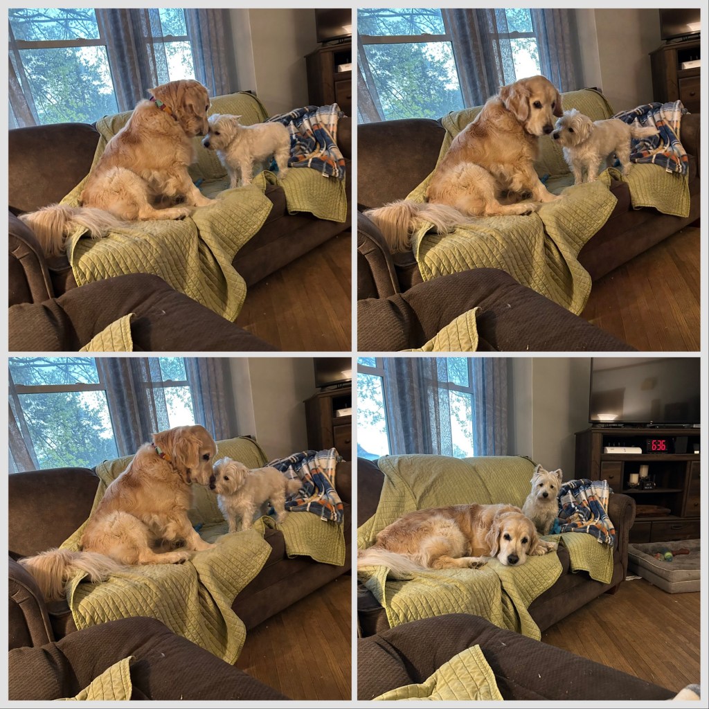 Angel Belle showed me how to calm my sisters down when they are all ramped up. My Margret was amazed when I helped Bessie settle down the other day. I don’t know why she was so surprised I was taught by a pro. ~ Scruffy Pup