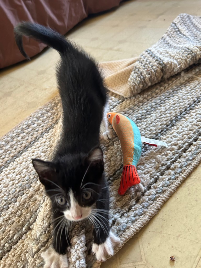 So I just met my big. loud. licky. sister Bessie. My Margret said that being loud and licking is how she says hi. My Greg helped us to get to know each other. It went fine and I did purr but after My Margret put me back in the kitten palace I gave her a look and dried off my fur that my big sister got wet. Sigh… ~ Graham Kitty