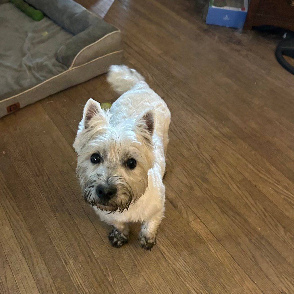 Well yes I know I just got home a little bit ago from my groom appointment. But you see then it rained and it was so much fun to dig for the imaginary whatchamacallits. You wanna come see? ~ Scruffy Pup