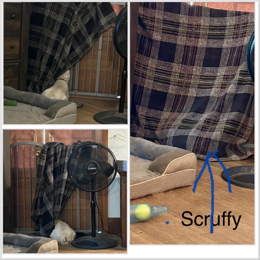 A terrier is always on the watch and sometimes undercover! ~ Scruffy Pup