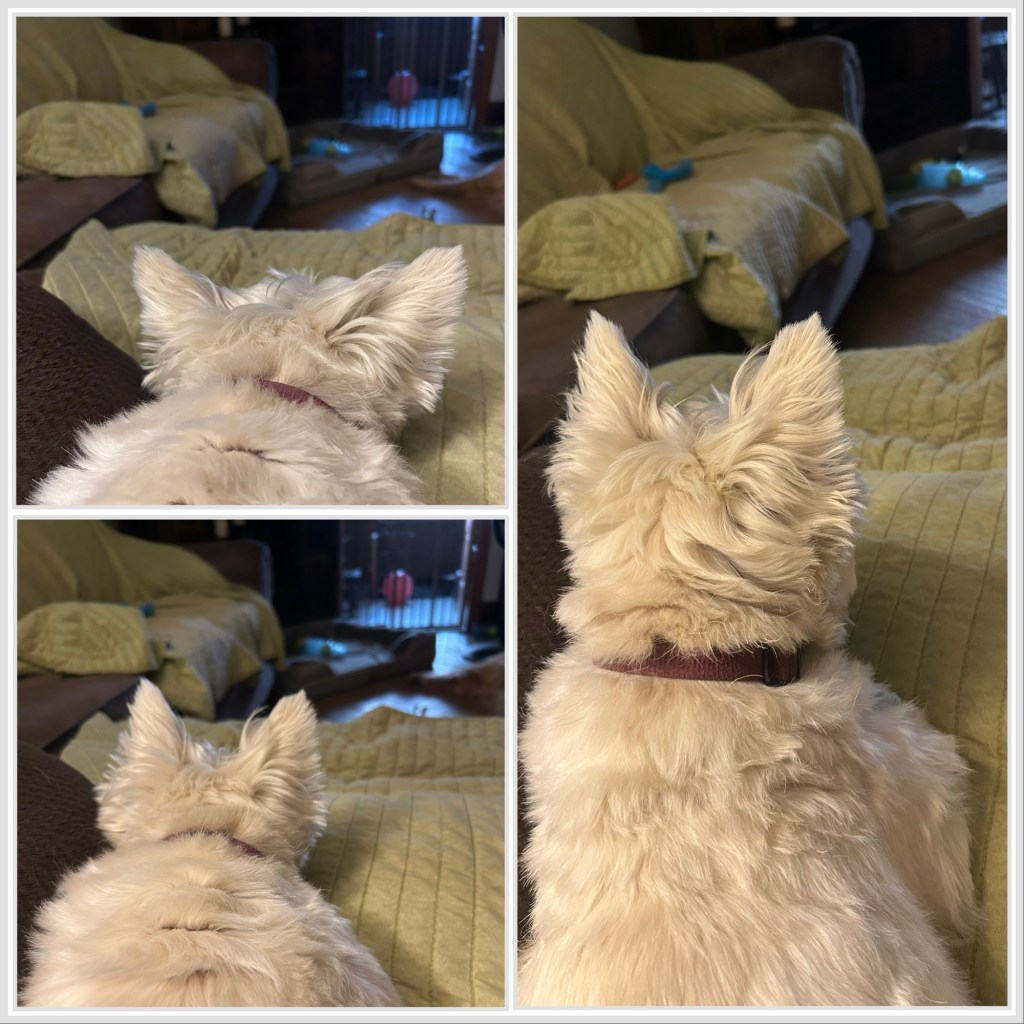 My Margret says my ears show my various stages of watchfulness. I think she’s silly and I don’t know what she’s talking about. ~ Scruffy Pup