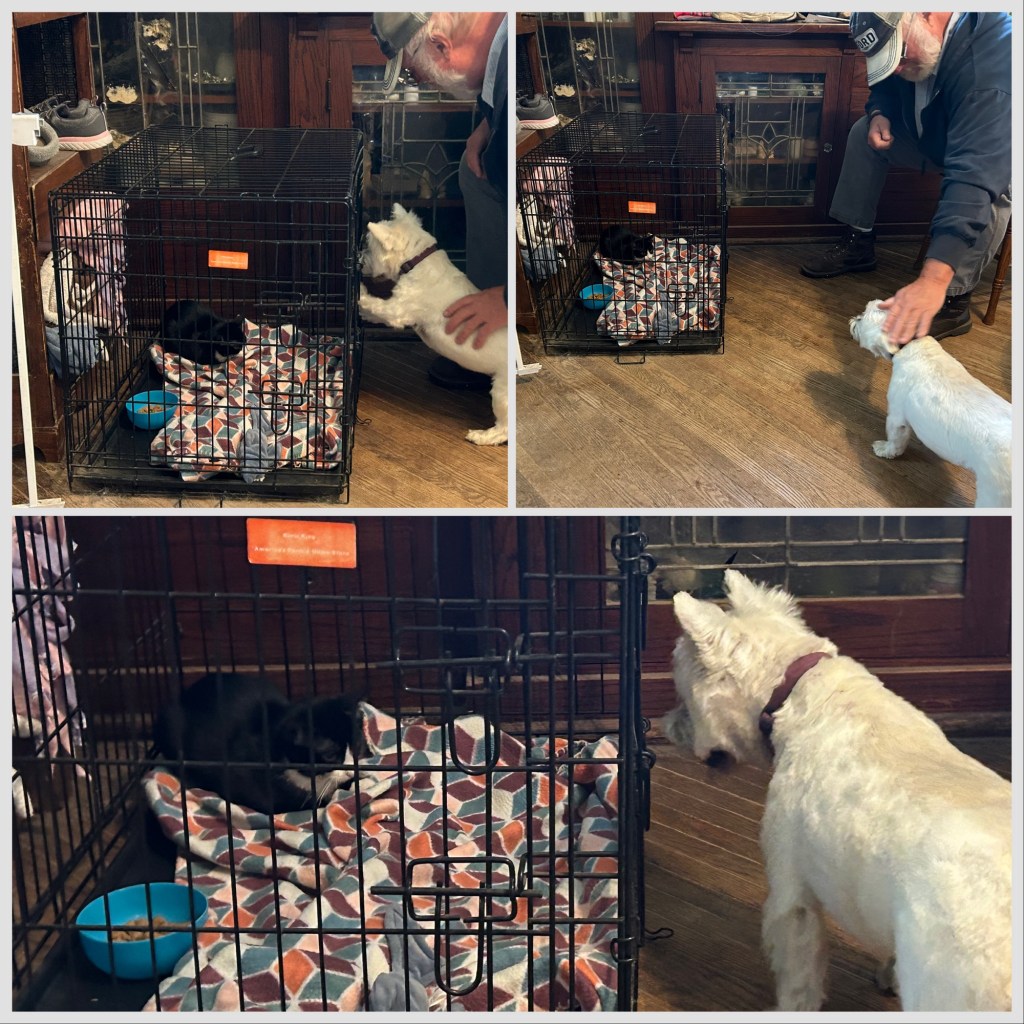 Note: we are ever watchful of both Graham and Scruffy to make sure neither becomes stressed. Lots of good boy and good girl praise and Graham had treats in a bowl right next to him but he’s not sure yet if he really likes treats. Given time I’m sure that will change too.