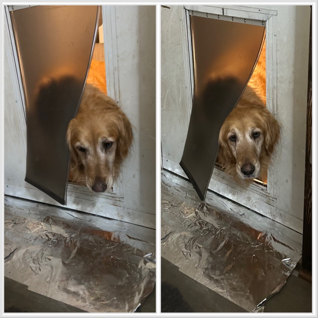 Note: the aluminum foil is a deterrent so the kittens won’t walk out the dog door. Have you ever seen a 70lb golden retriever do a bunny hop? It’s priceless 🤣 ~ My Margret