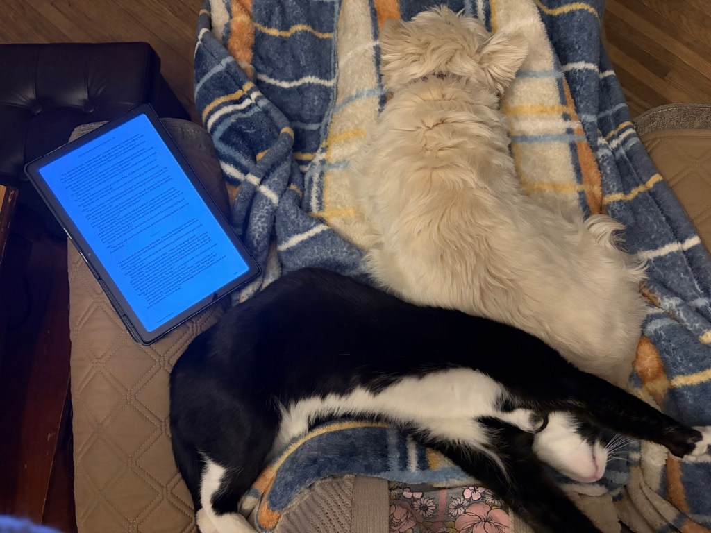 Because we can. Because we know what she needs. Because we want that comfy lap for a bit longer. ~ Graham Kitty and Scruffy Pup