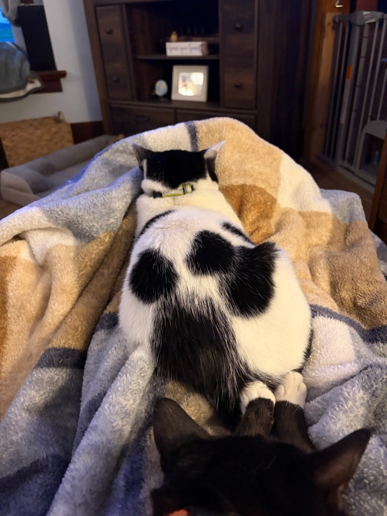 My spots look different depending on how I’m laying. Last night they looked like a slightly lopsided paw print! ~ Gus Kitty