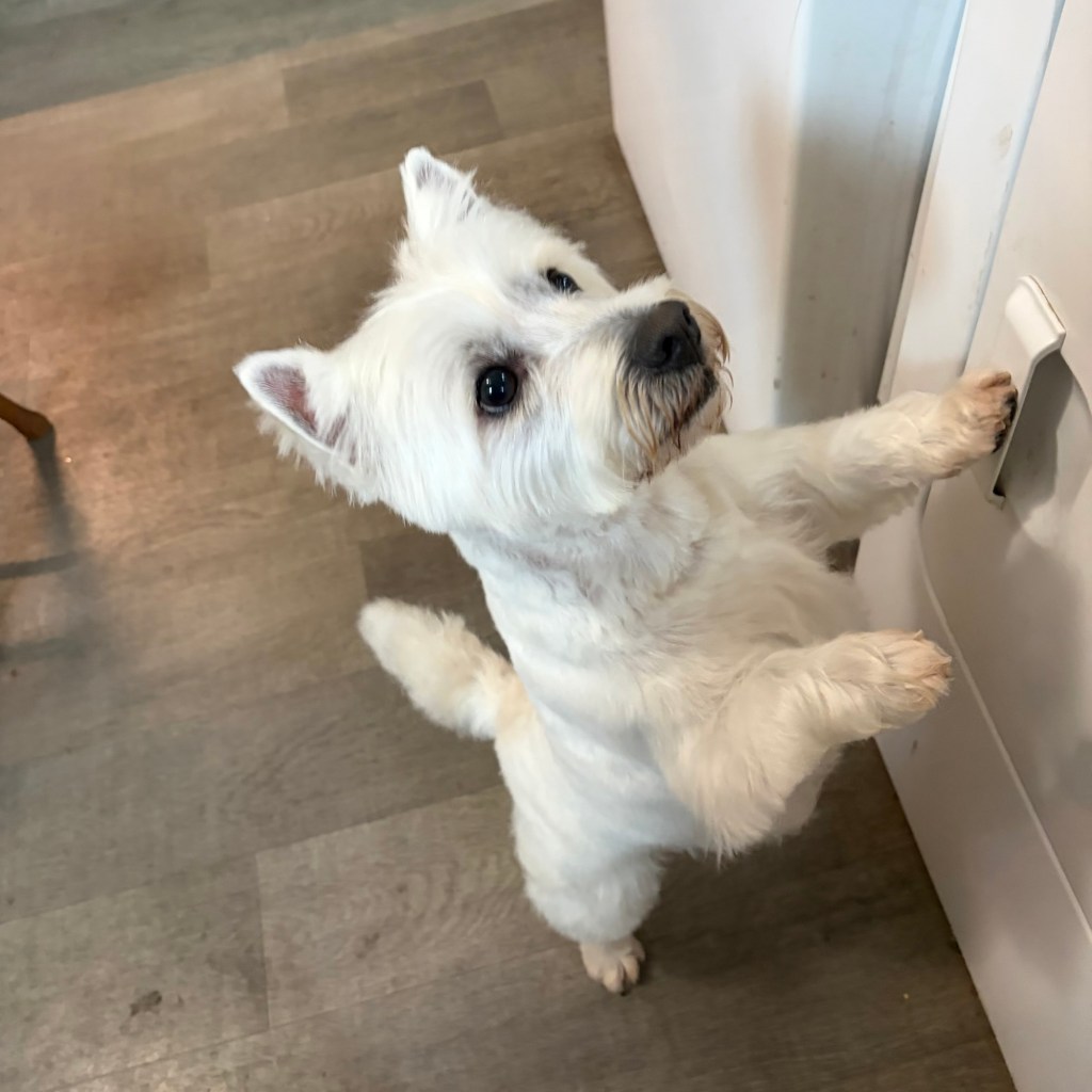 My Margret says I’m a determined little dog. She’s right and I know if I stare hard enough at the treat basket it will fall to the floor and I can eat all I want! ~ Scruffy Pup