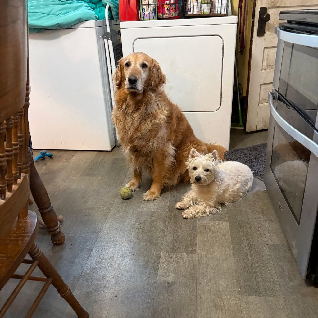 Bea, I’ll keep staring at her and you keep looking sad. She can’t resist both of us! ~ Scruffy Pup