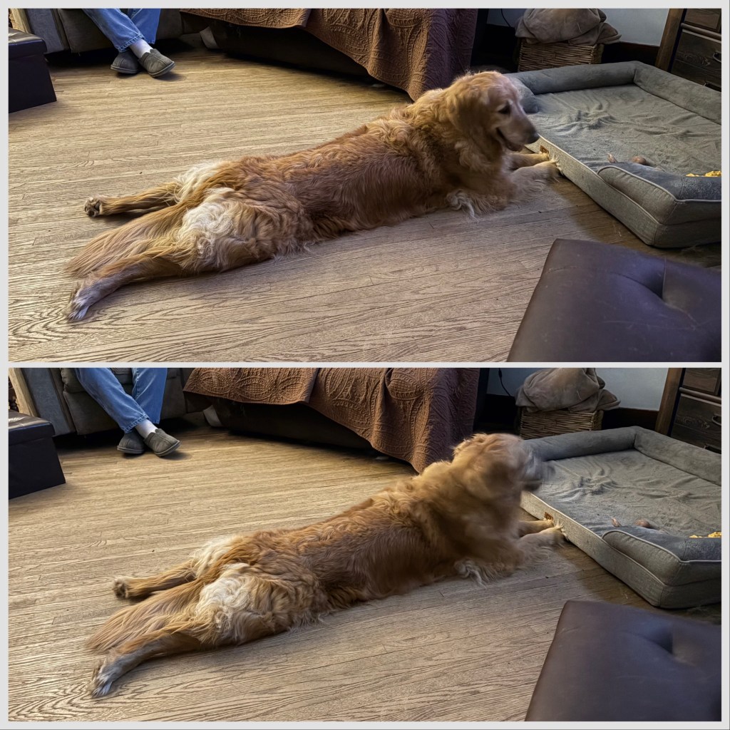 What an amazing stretch ~ awesome doggie ~ Hugs ^_^