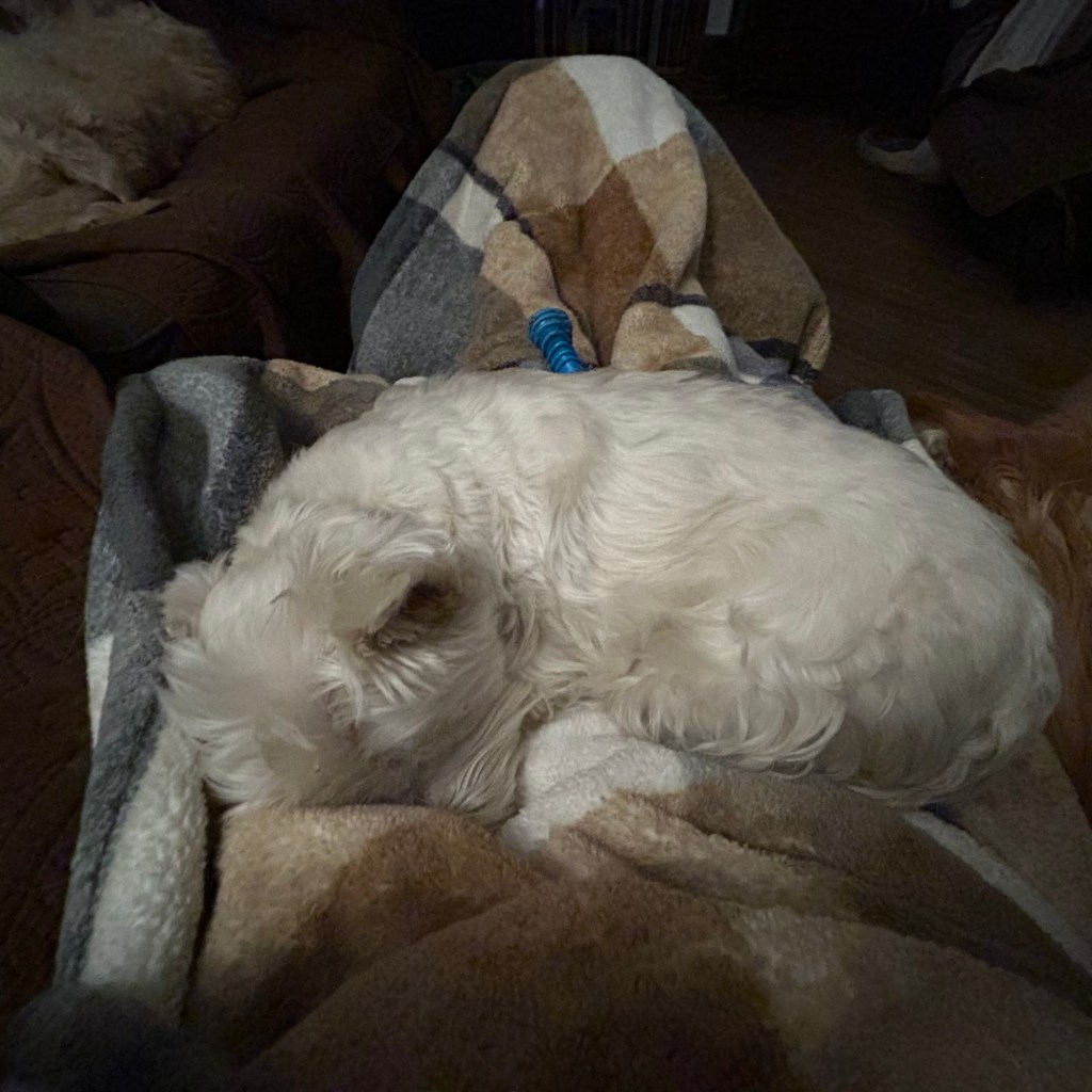 I’m just not sure what to think, usually Graham will move when I jump up next to him. He’s not doing that anymore, My Margret says that’s okay and is a good thing. Mmm l’m not so sure I think I need to sleep on it. ~Bea Pup