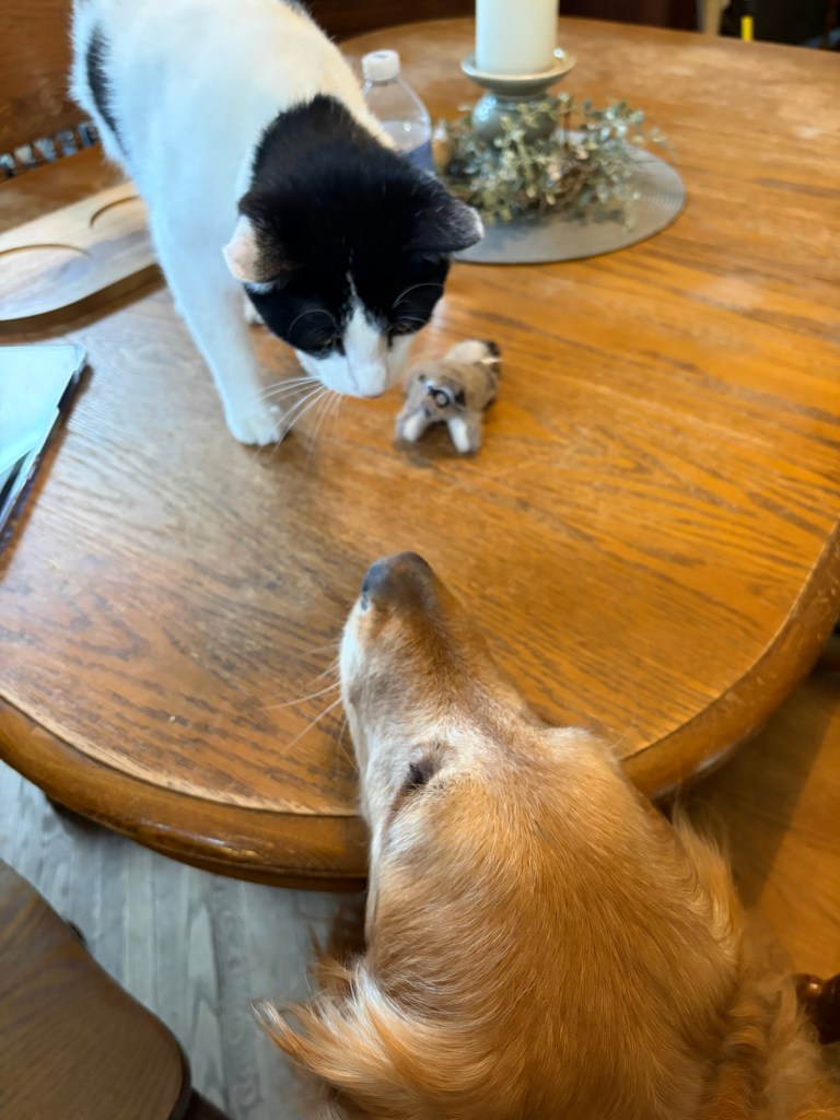 I went yesterday to see Dr. Amber and her crew for my wellness visit. My comfort was to climb up on the bench and try to sit behind My Greg, that didn’t work but I did sit next to him for pretty much the whole time. I was told I was a very good girl, and in great shape for my very wise age of 11 years 6 months.