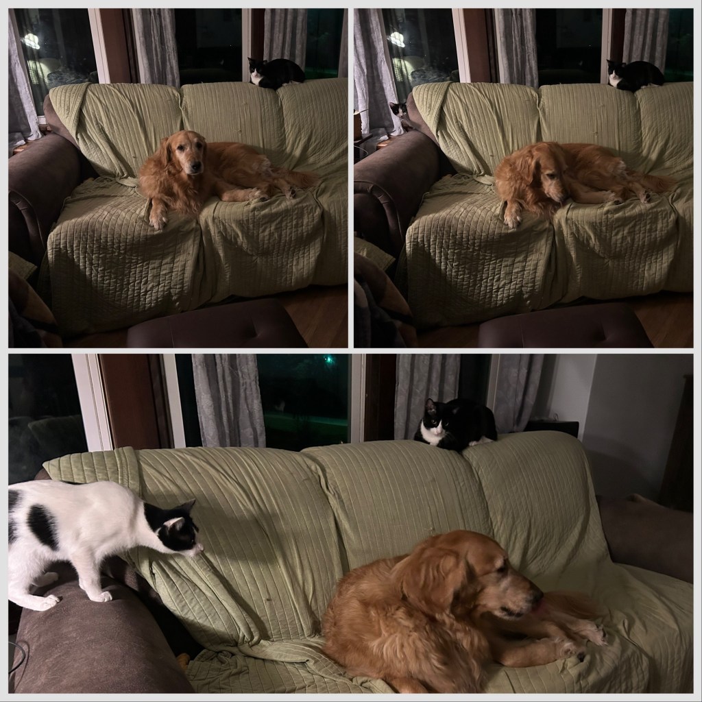 Wow Gus and Bessie in the same room at the same time and both of them just chillin !?! I’d better keep my eye on both of them. A terrier’s job is never done. Oh and I heard My Margret say “progress”. Hmm, she’s been saying that a lot lately. ~ Scruffy