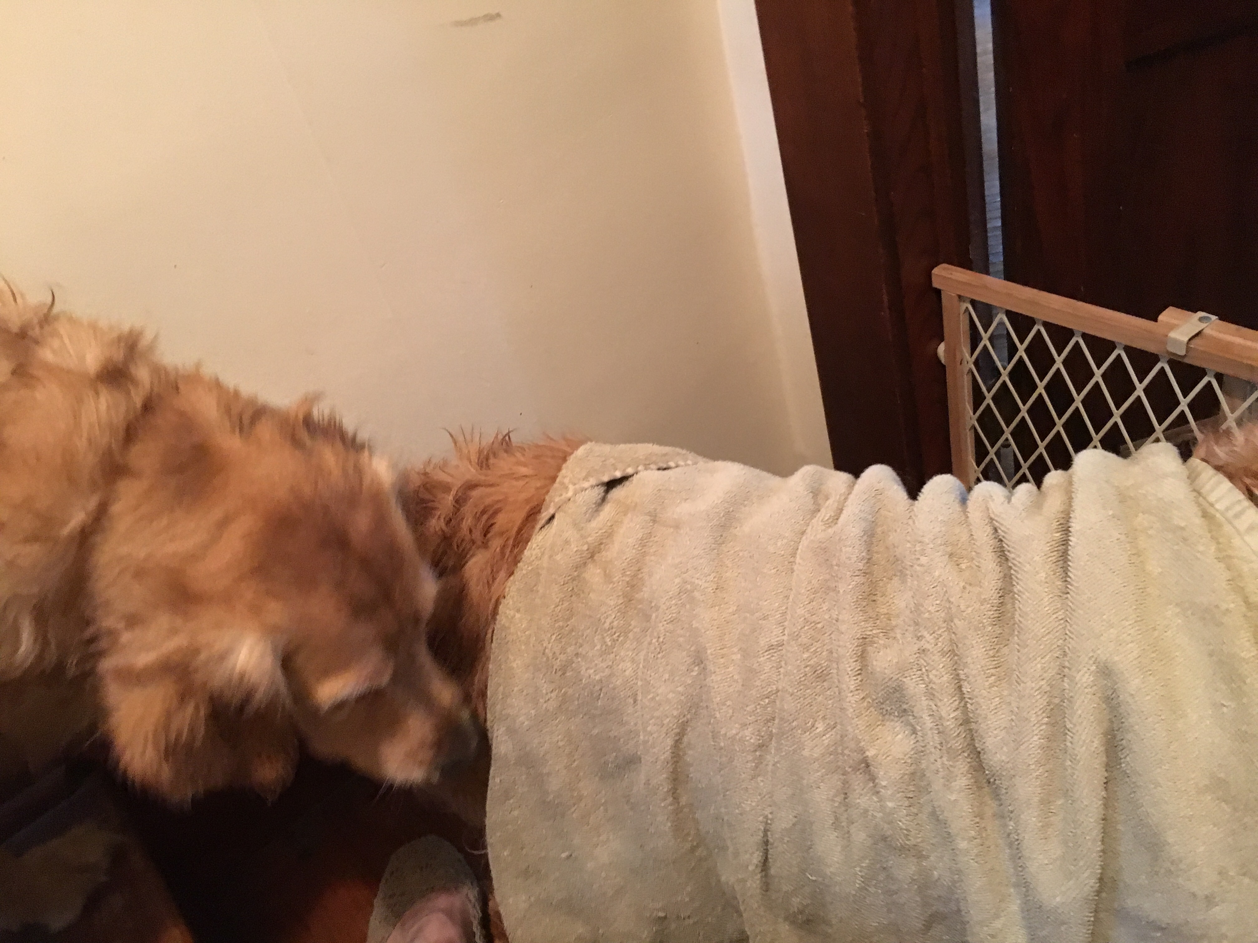 My Margret and My Greg’s big and little people were here for the Thanksgiving holiday. The littlest little person Katie wanted to play with our toys, now we were ok with it but since Katie likes to put our things in her mouth My Margret also known as Katie’s Grandma put the toys in another room. She brought them back out this afternoon after Katie and her family left to go home. As you can see I was really happy to have my tennis ball back.