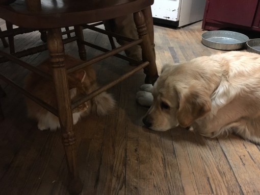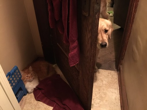 Tonight instead of a thunder party we had a forbidden basement tornado party. The pups and Linus were troopers as we spent a good portion of the evening in the basement.