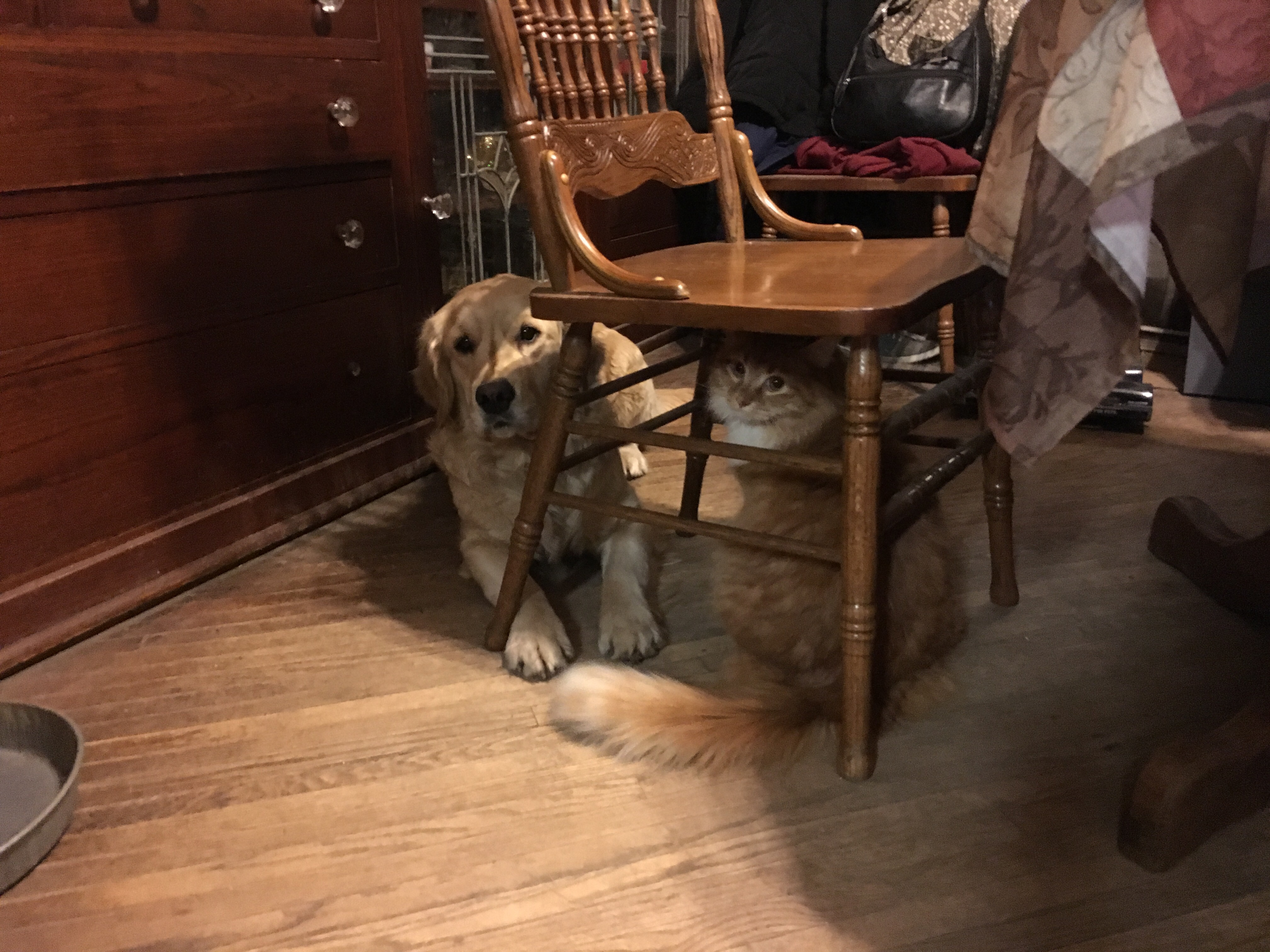 Tonight instead of a thunder party we had a forbidden basement tornado party. The pups and Linus were troopers as we spent a good portion of the evening in the basement.