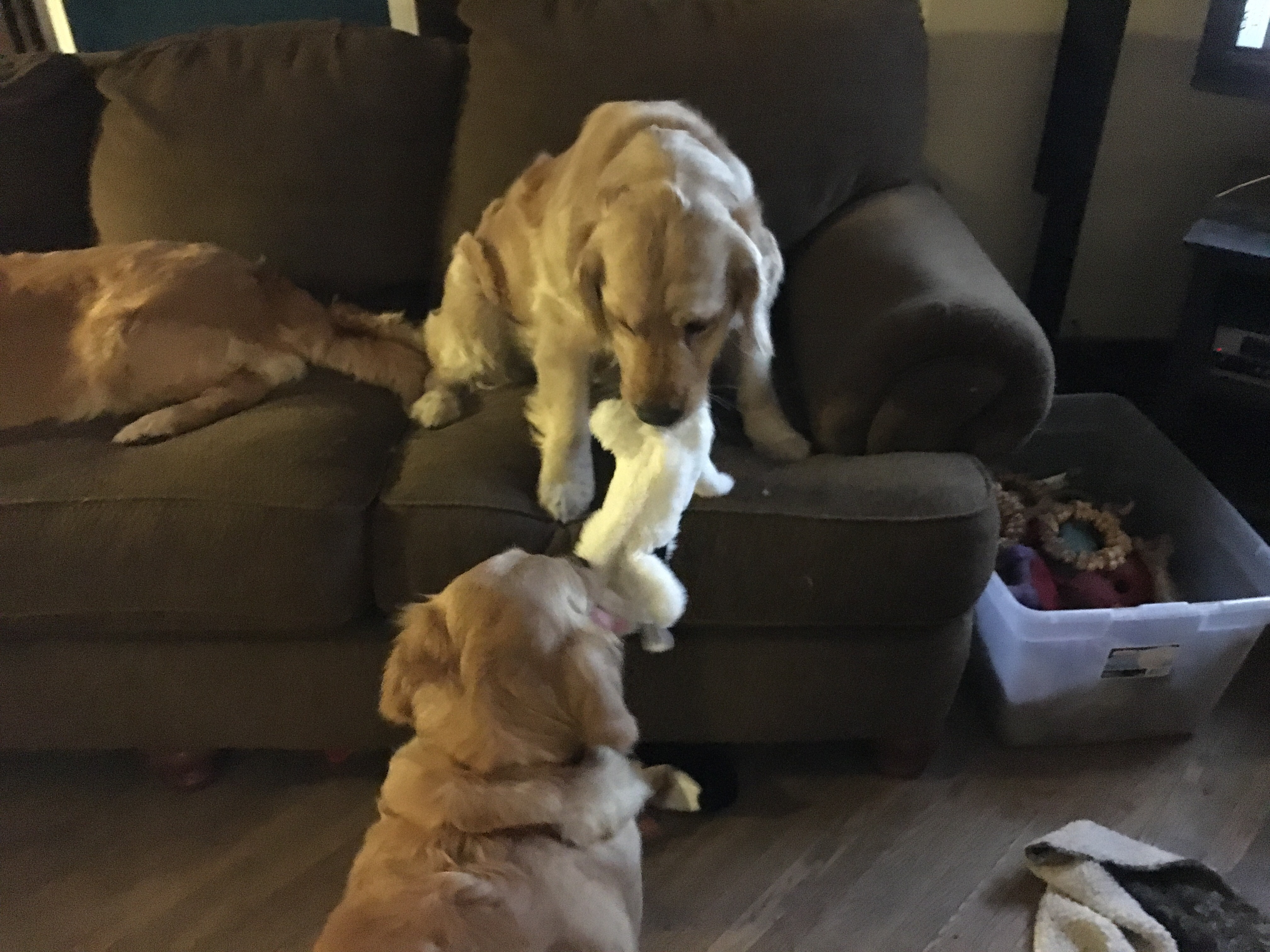 I’m so excited! My Margret was cleaning and found our tennis balls under the couch. As you may remember I have a hard time getting the tennis ball to squeak while my sister Bonnie is a show off and squeaks it non stop. But today I tried really hard and as the video proves I can squeak it almost as good as Bonnie can.
