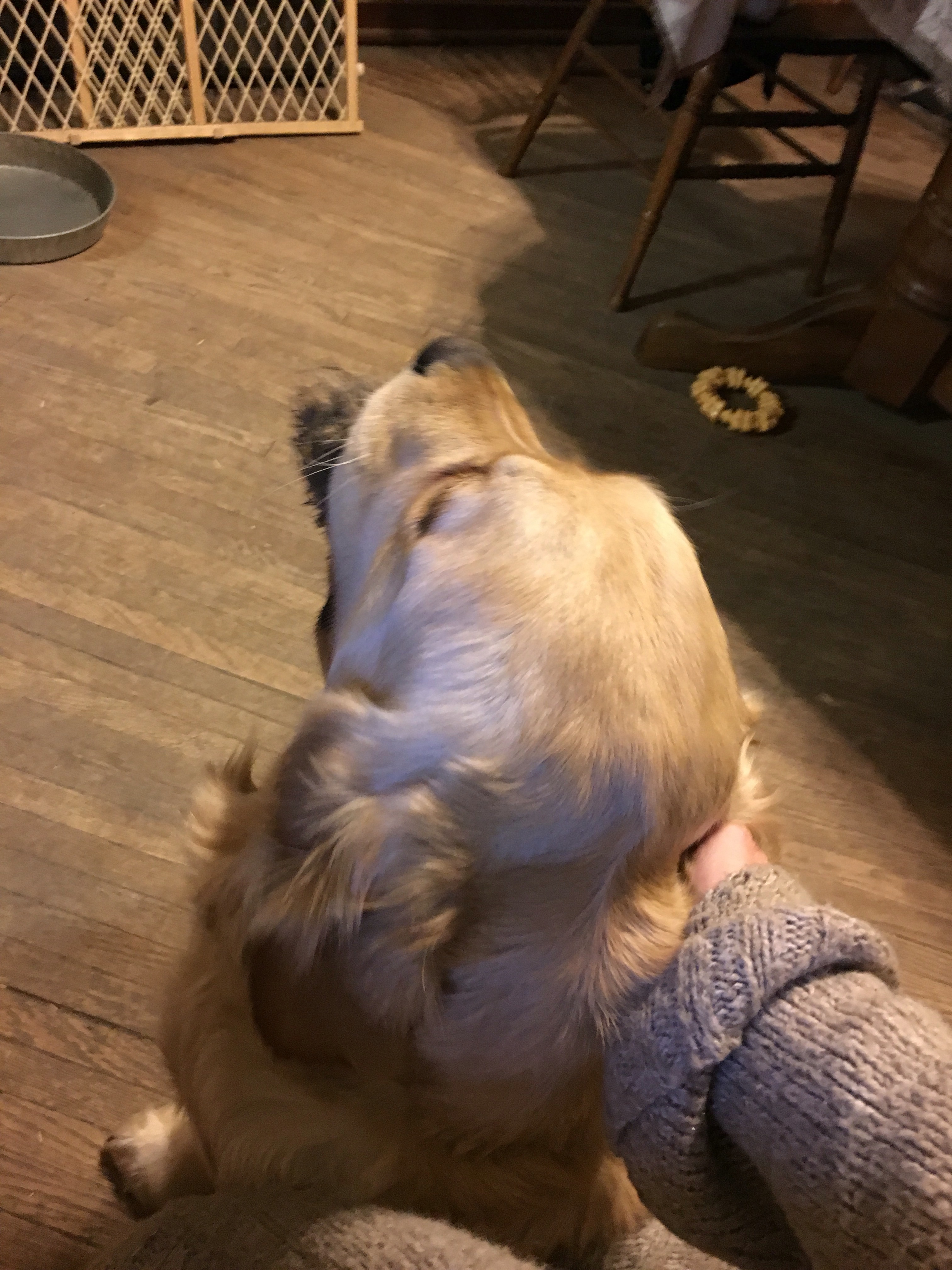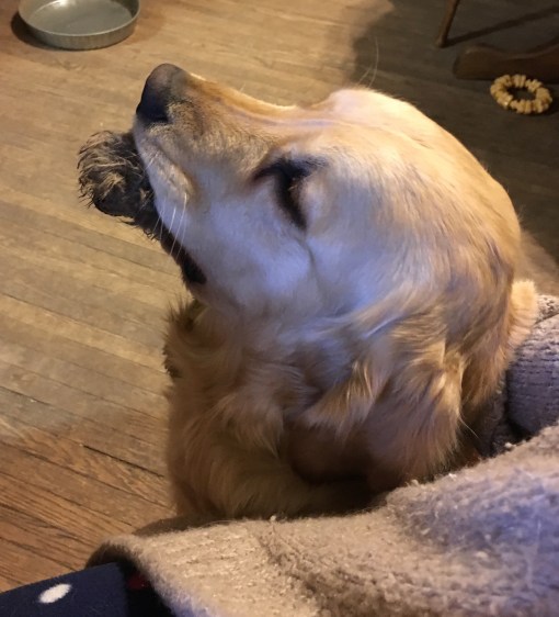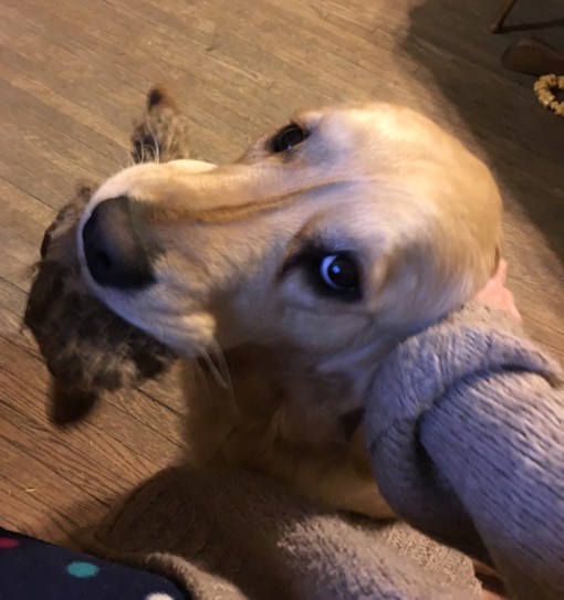 My Margret gives the best cuddles. It’s how we usually start our day. She says cuddling me makes her day get off on the right foot. I see her feet but I’m not sure what the right one is.