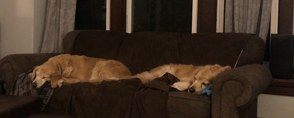 The deep deep sleep of two senior pups who tag teamed to remove a glove from My Margret’s coat and took turns chewing it up! There’s a little bit of puppy in all of us. 💕 ~Belle and Bessie Pups