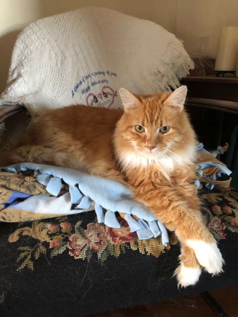 I like my chair, I’ve found that it’s the perfect place to escape from the puppy induced chaos going on lately. How much longer before Little One grows up? ~Linus Kitty