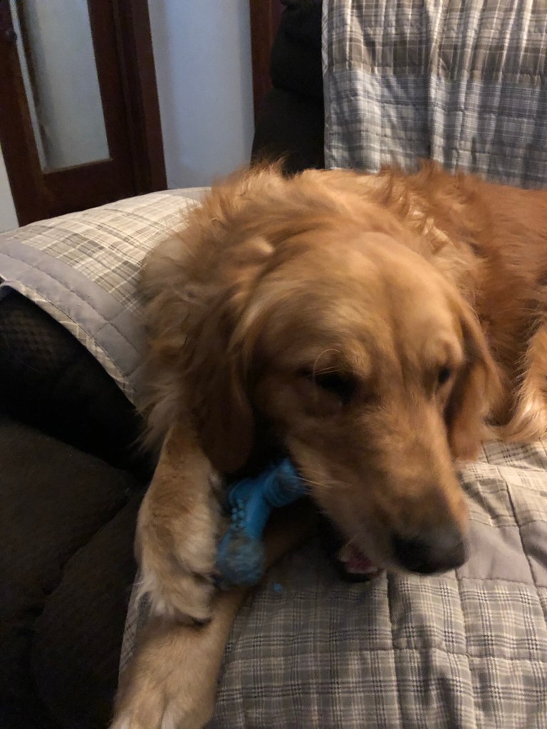 We all agree this is our favorite toy! (At least for tonight) ~ Belle, Bea and Scruffy