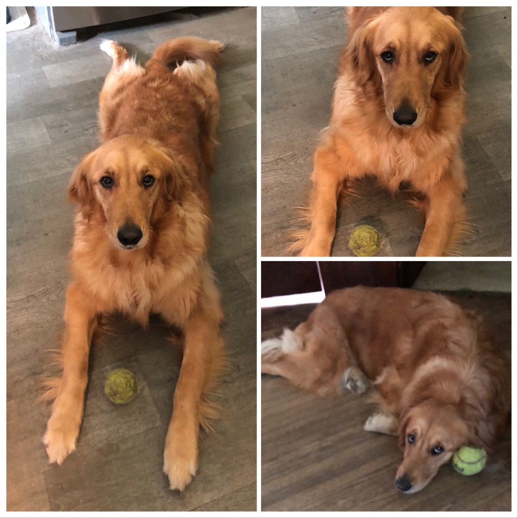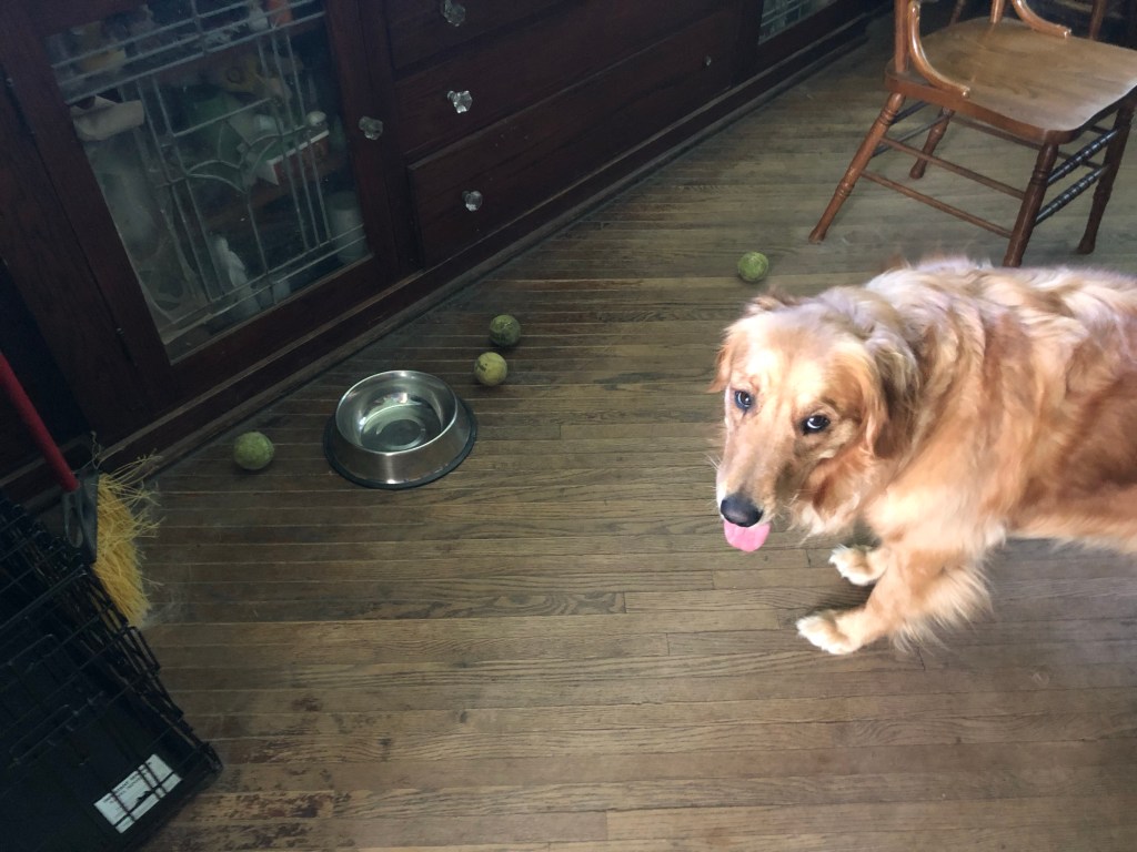 Today’s dose of cute is brought to you by Bea Pup ~ I know I have three other tennis balls that I can play with. But I want the one by the big stick will you please help me get it? (With me body blocking the “big stick” (broom) Bea was brave enough to get the ball she had been barking about for 5 minutes. ~ Bea’s My Margret) 💕
