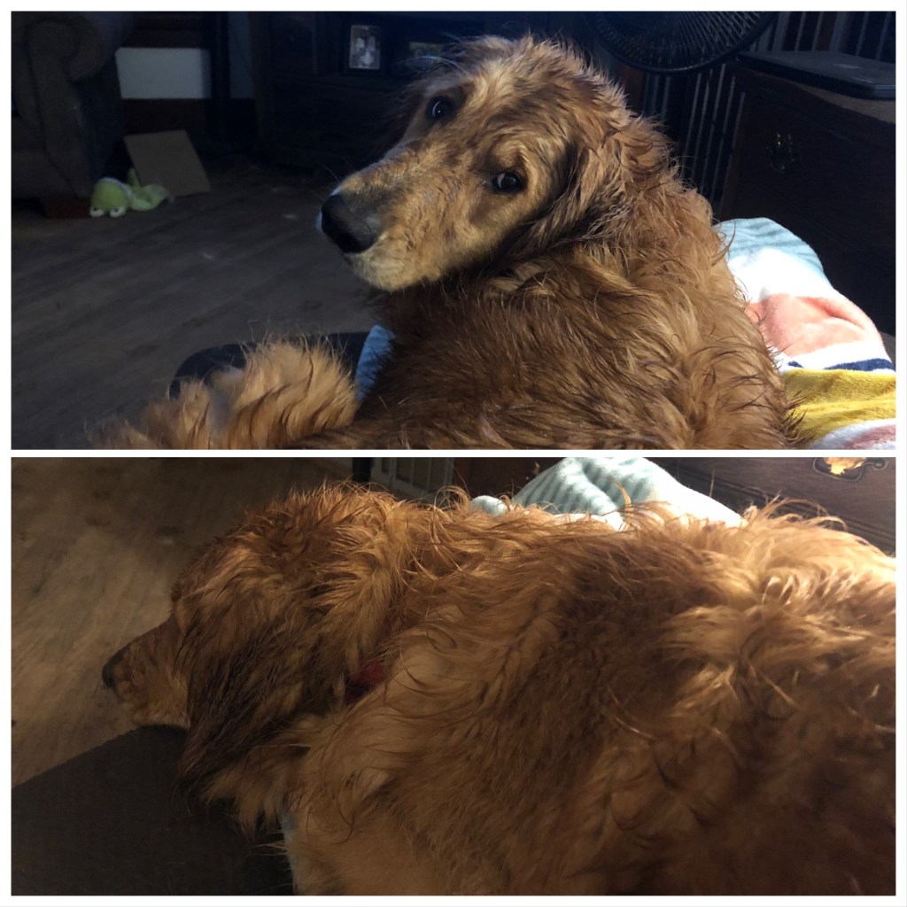 It’s lots of fun but also exhausting to sniff all the wonderous smells that appear when it rains. ~ Bea Pup