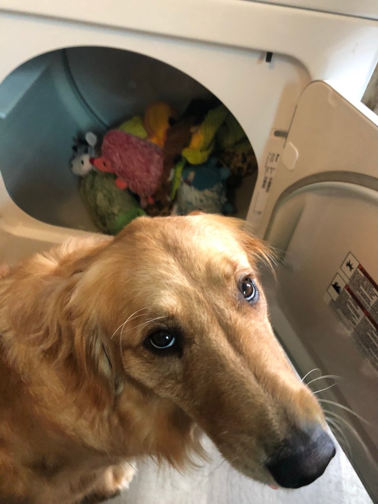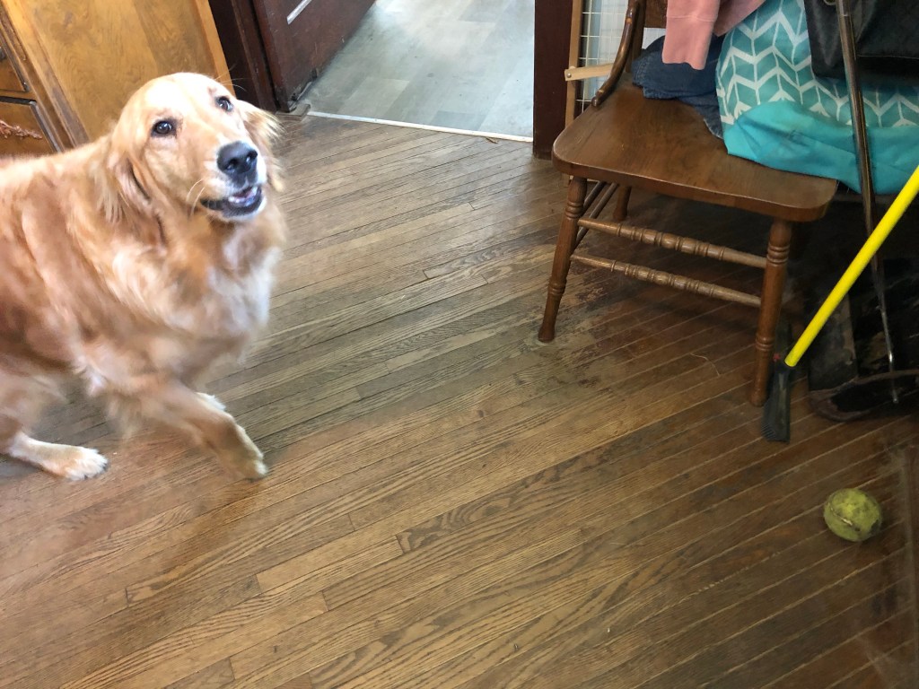 (After the picture I knelt by the ball and when the broom and dust pan didn’t move she was brave enough to get the ball herself. 💕 ~Bea’s My Margret)
